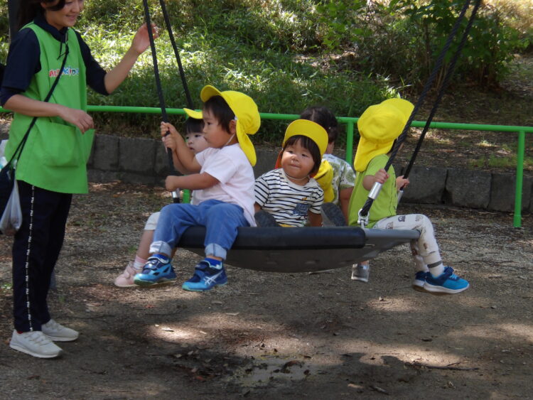 初めて西山公園に行ったお友達もいたようで皆ニコニコと自分たちのしたい遊具に遊びに向かったいましたよ〜![]()
