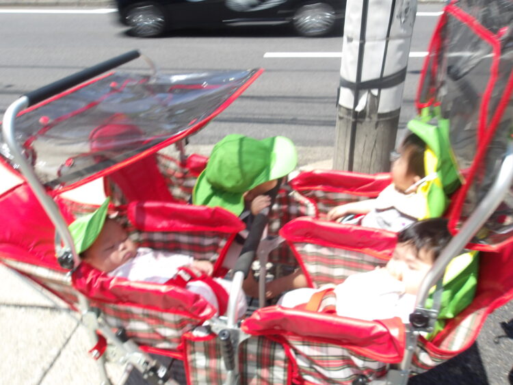 保育士やお友達とともに手をきちんと繋いで歩くことができてきているね![]()