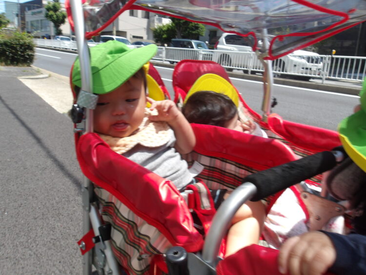 「今からどこに行くんだろう」と保育士の方を見ていました![]()