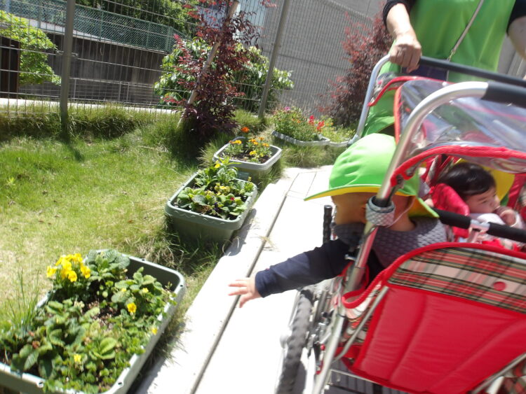 園庭に咲いているお花に手をのばしている子もいましたよ![]()