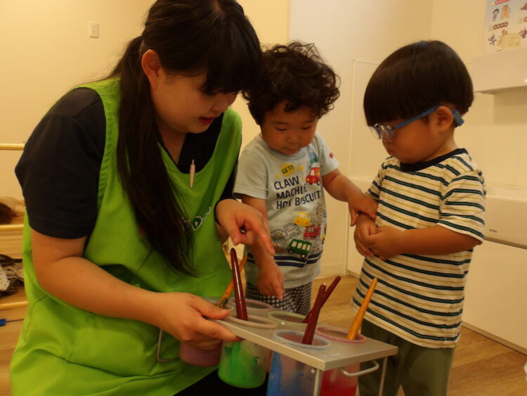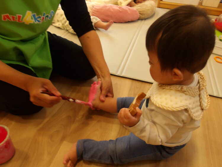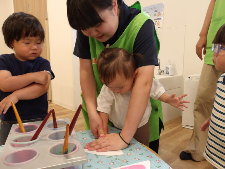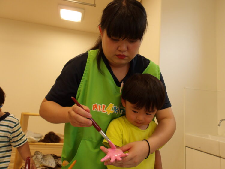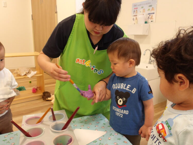 絵の具を塗っている時の感触が嫌な子は嫌がっていた子もいました