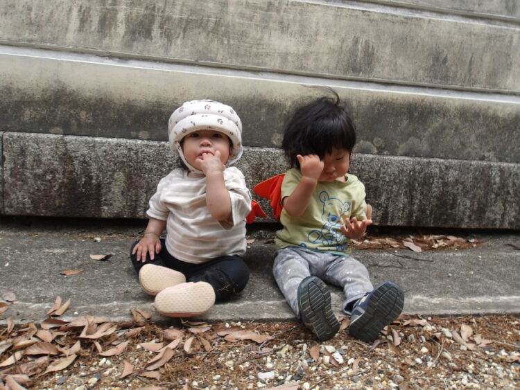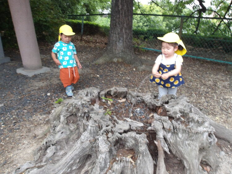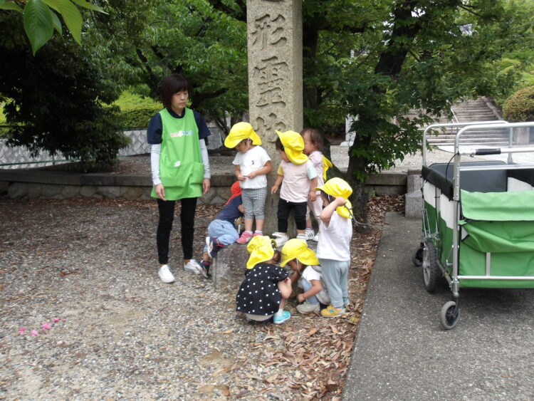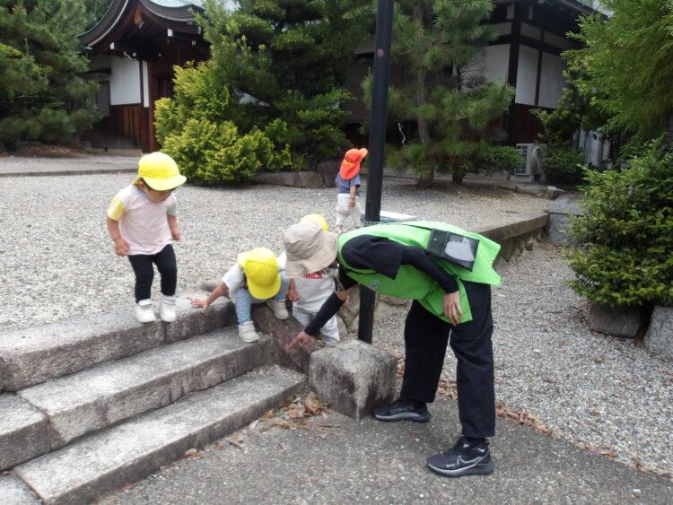 舎利殿では虫探索をしたり、どんぐりや松ぼっくりを見つけて喜ぶ姿が見られました👀