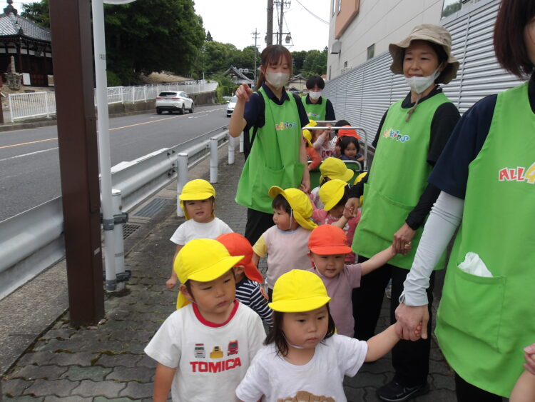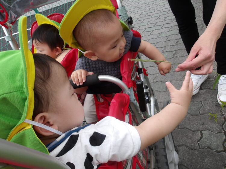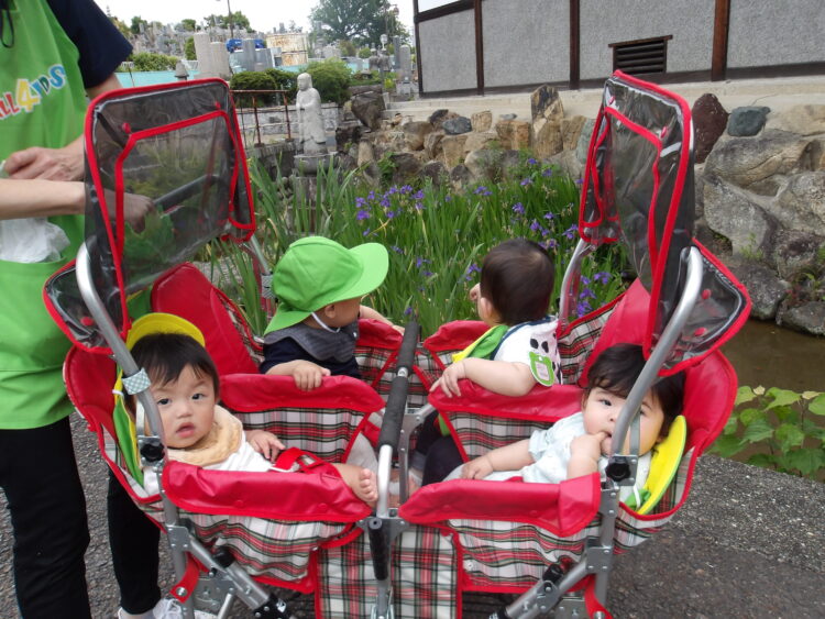 お友達と手を繋いで歩いたり、バギーに乗って歌を歌いながらお散歩していました🎵