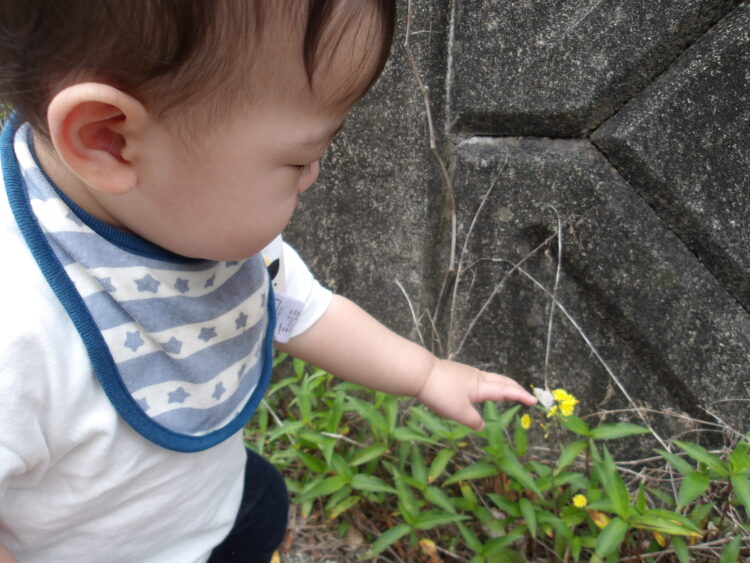 途中に、ちょうちょがとまっていたので触っているのかな![]()