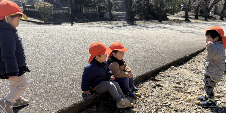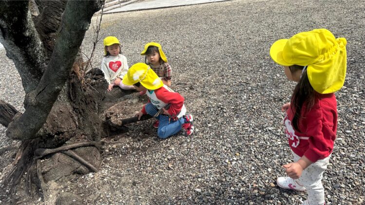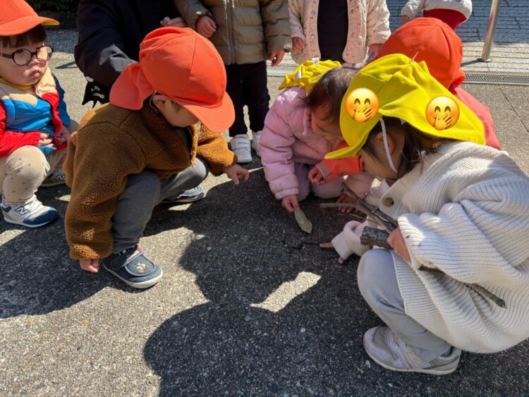 今日はうさぎ組、あひる組で園庭で遊んでからから舎利殿にお散歩に出かけました!  舎利殿ではアリ🐜も発見!少しずつ春の訪れを感じます☘️