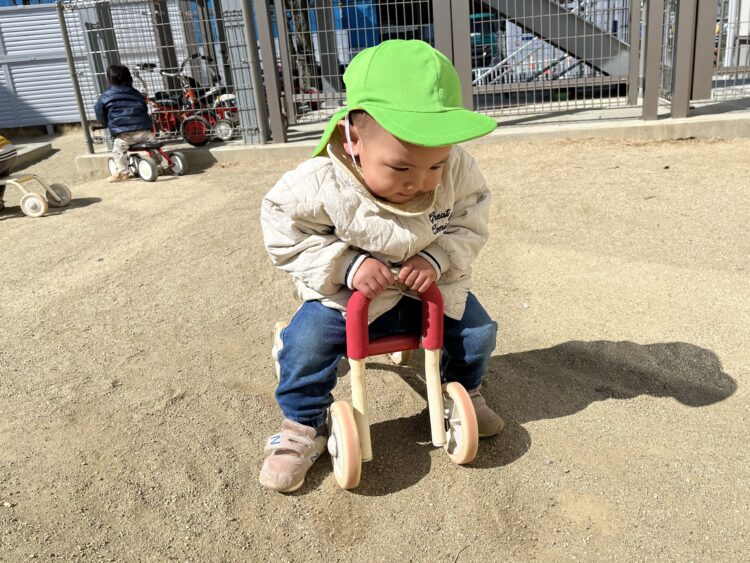途中にはお友達が乗っている時に先生と一緒に押してくれるお友達もいました!