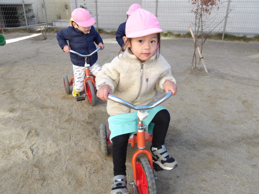 三輪車やバイクを使って遊んでいる子もいました☺️