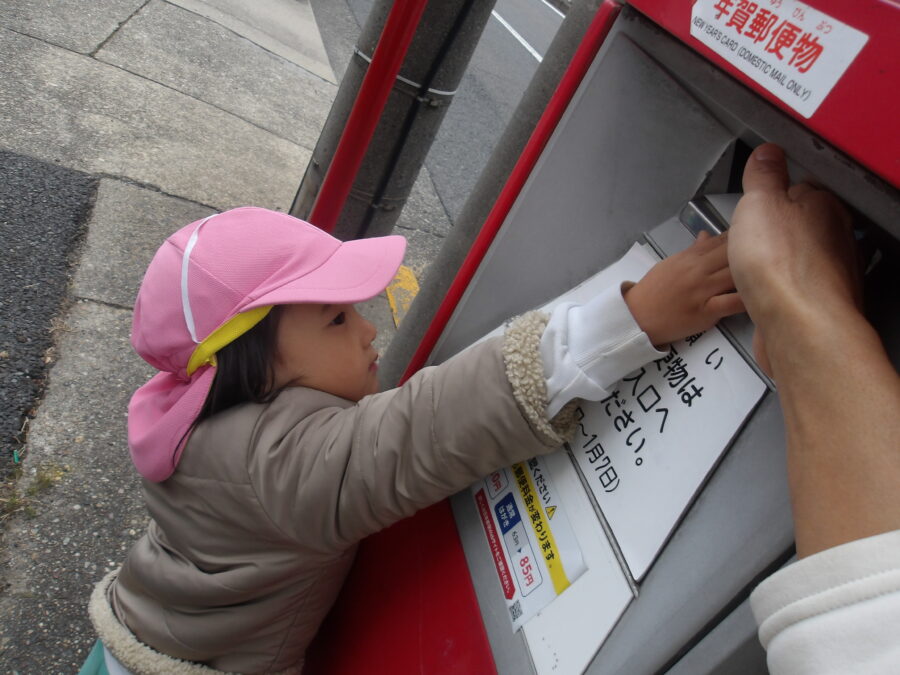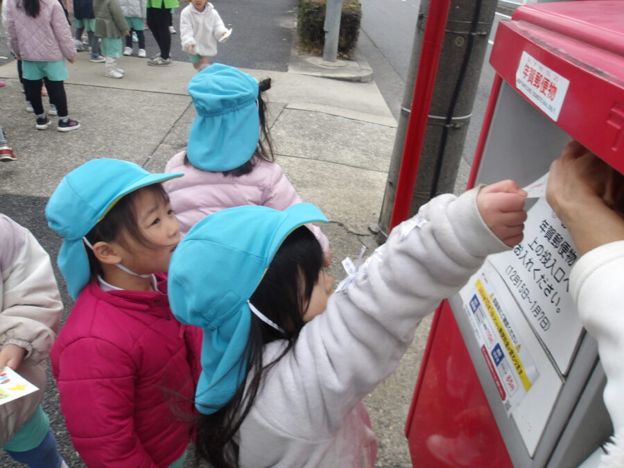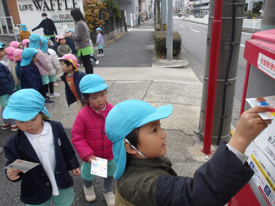 園庭やお部屋で遊び終えた後は郵便ポストに年賀状を出しに行きました🥰