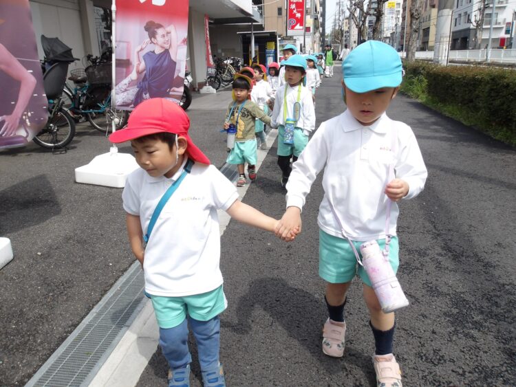 今日はそら組、にじ組、たいよう組で散歩に出かけました!
