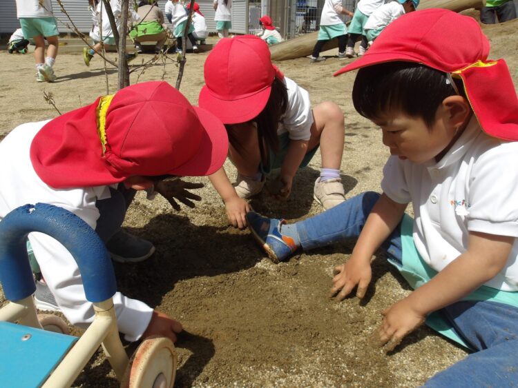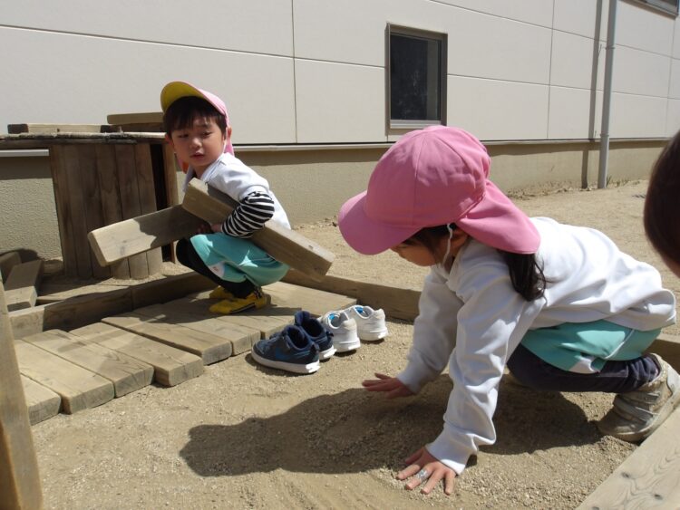 先に乳児さんが遊んでいたので兄弟がいる子は一緒に遊んでいました🤝