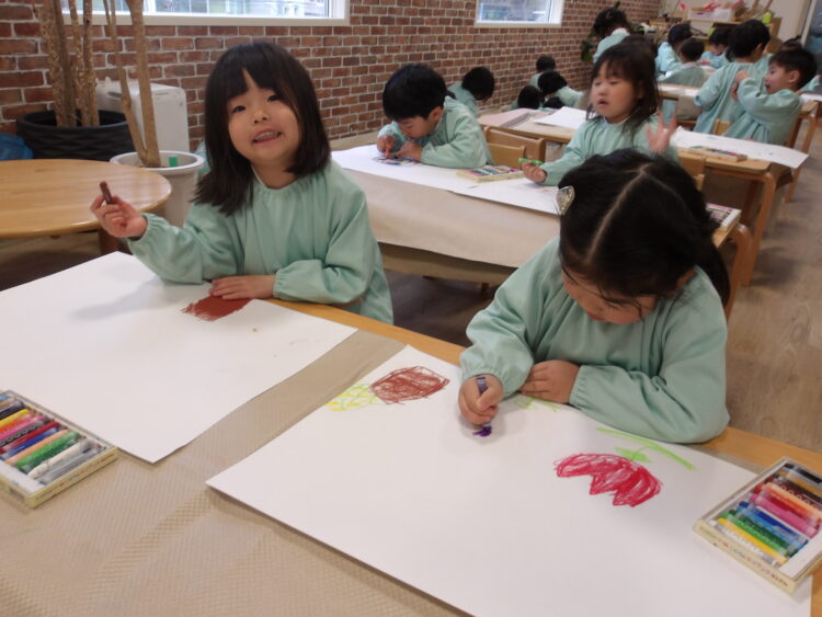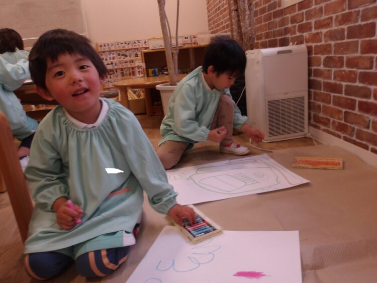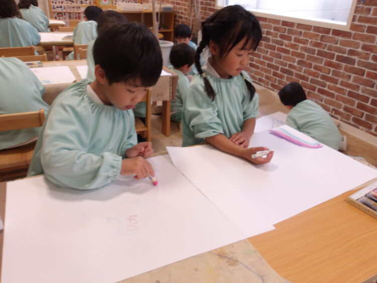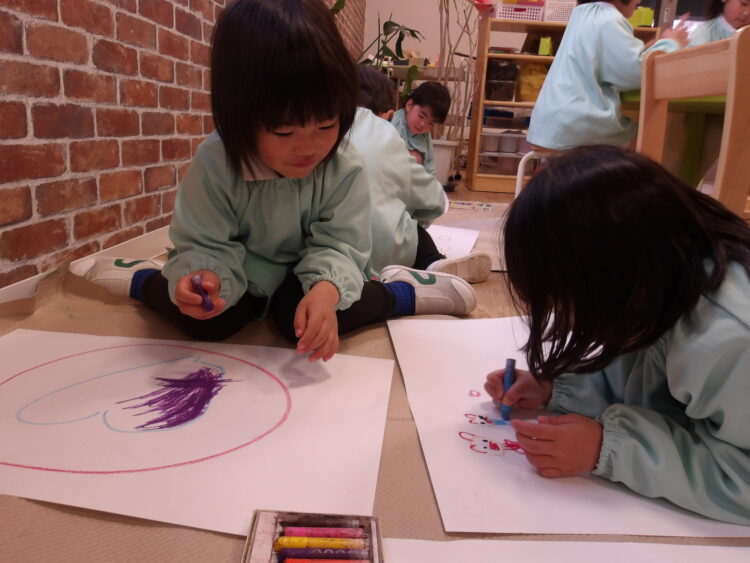 迷いなくクレヨンを持ち🖍️想像力を膨らませ素敵な作品を作っていました!