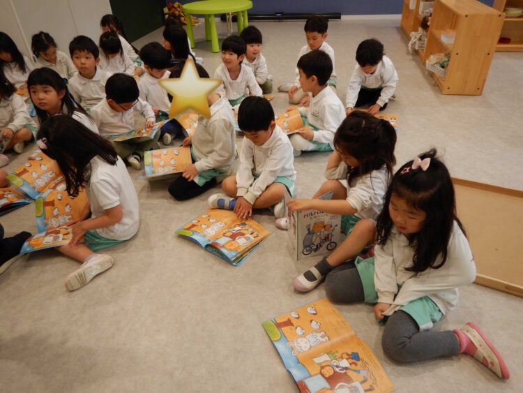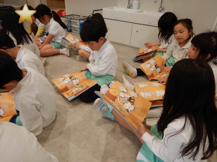 今日はみんなで月間絵本を読みました♪