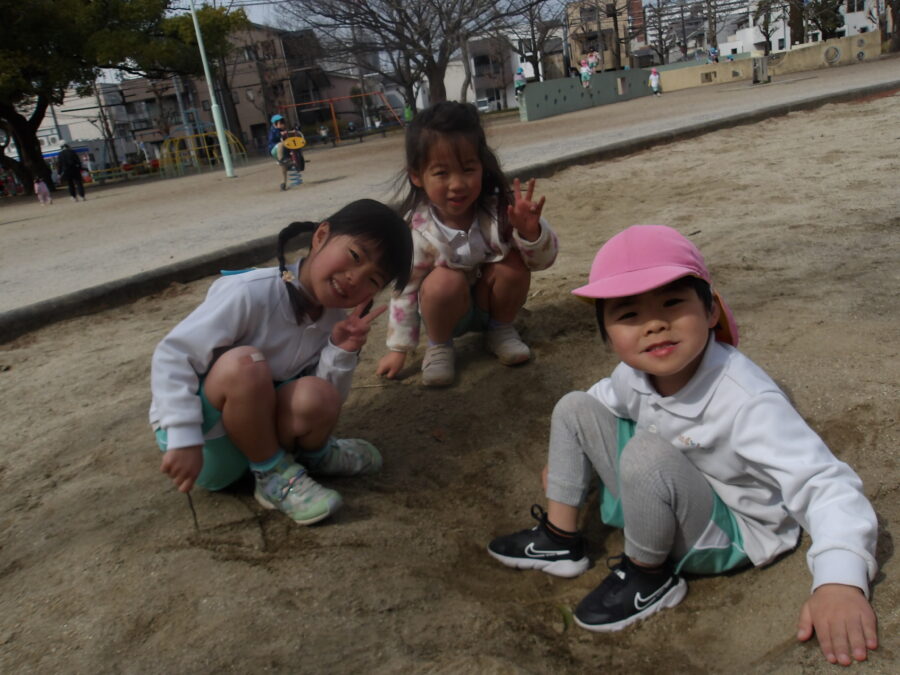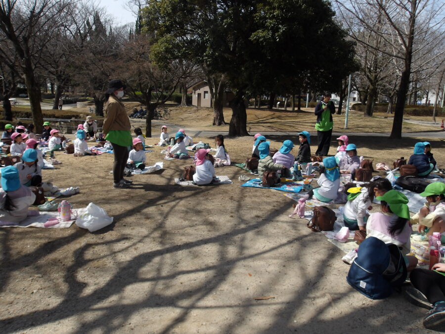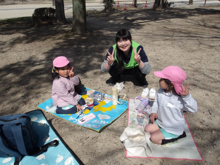 たいよう組さんはお友達と手を繋ぎ、にじ組さんとそら組さんで手を繋いで千種公園に向かいました✨ 千種公園に着いて、午前中は遊具で遊んだり、鬼ごっこをして楽しく遊んでいました お昼の時間になりお弁当を準備して、食べるまでワクワクする様子がありました😁