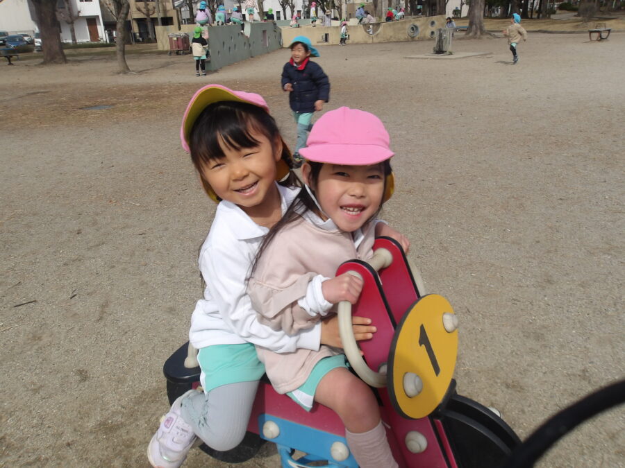 とってもぽかぽか陽気の中、遊具で遊んだり走って遊んだり