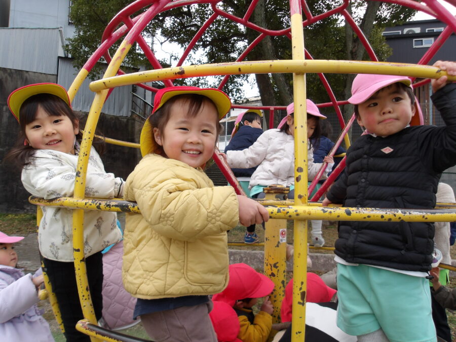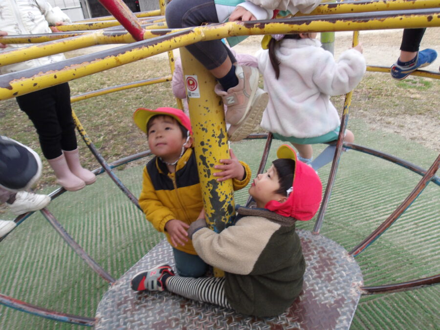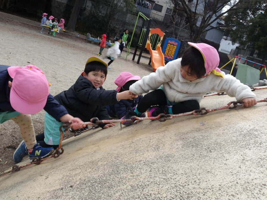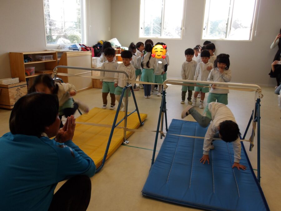 鉄棒くぐりでは、紐に当たらないよう上手にくぐっていましたよ![]()
