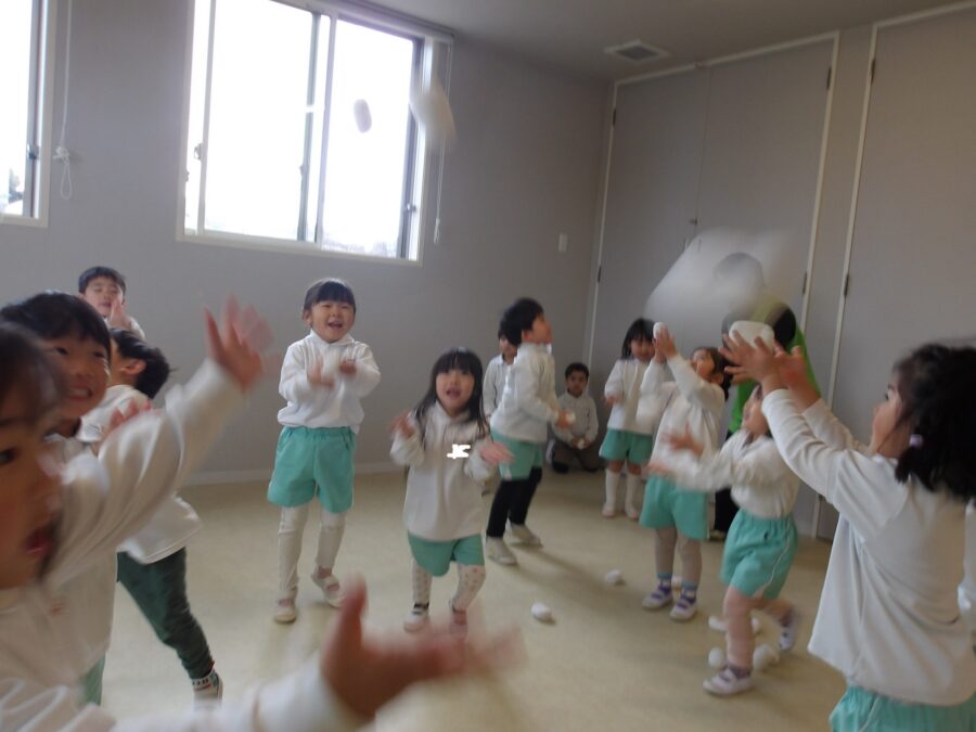 そら組さんはお手玉を投げてキャッチしたり、転がしドッジに挑戦しました!