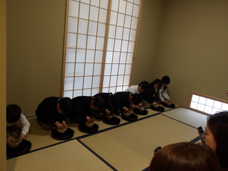 少し緊張気味の子どもたちですが、おうちの人に美味しいお茶を飲んでもらうために心を込めておもてなしをしました💓
