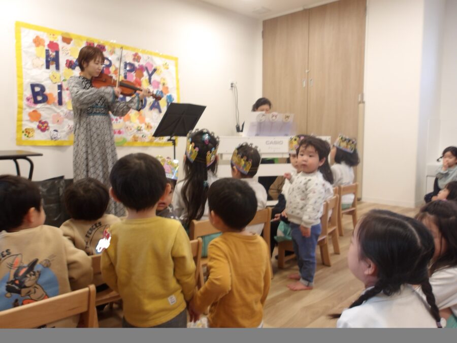 その後はヴァイオリン🎻とピアノの演奏を聴いてみんなで一緒に歌をうたい、楽しみました
