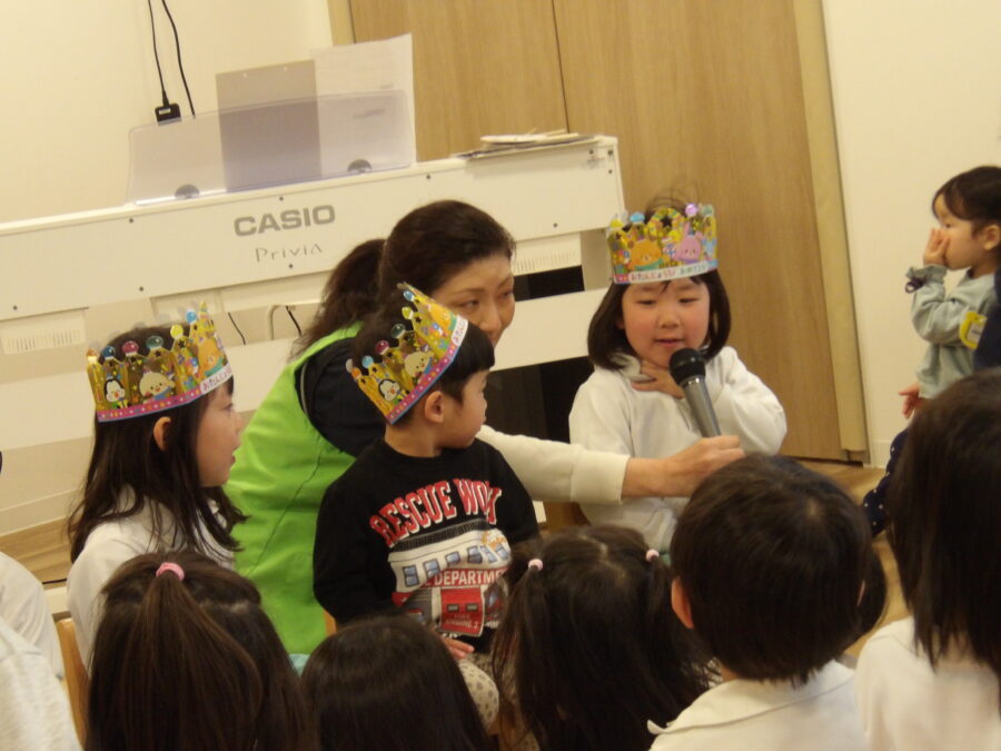 お誕生日のお友だちは、インタビューで好きな食べ物について聞かれ、上手に答えていましたよ