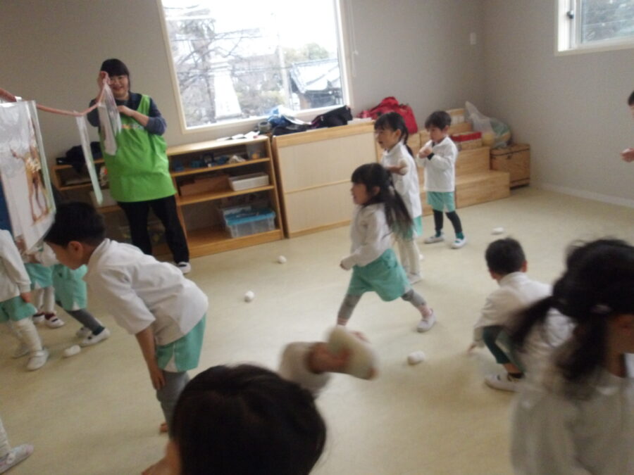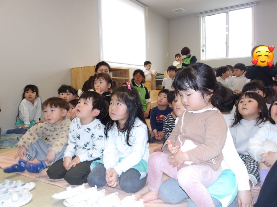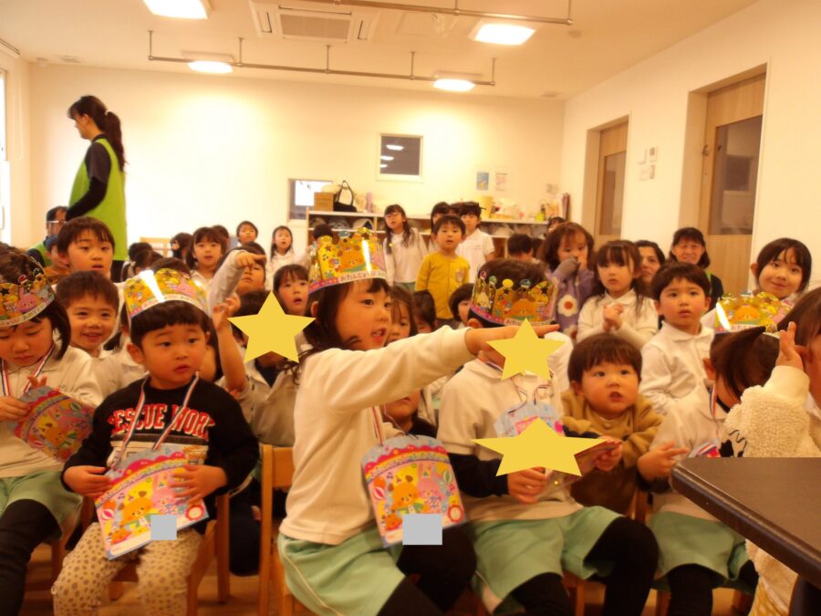 ひなまつりにまつわるお話を聞いたり、お人形のそれぞれの役割を知った子どもたち。