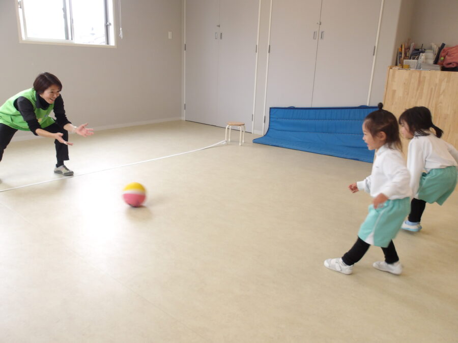 3人組でボールパス!お友達がキャッチしやすいように優しく投げてあげる姿もありました☺️