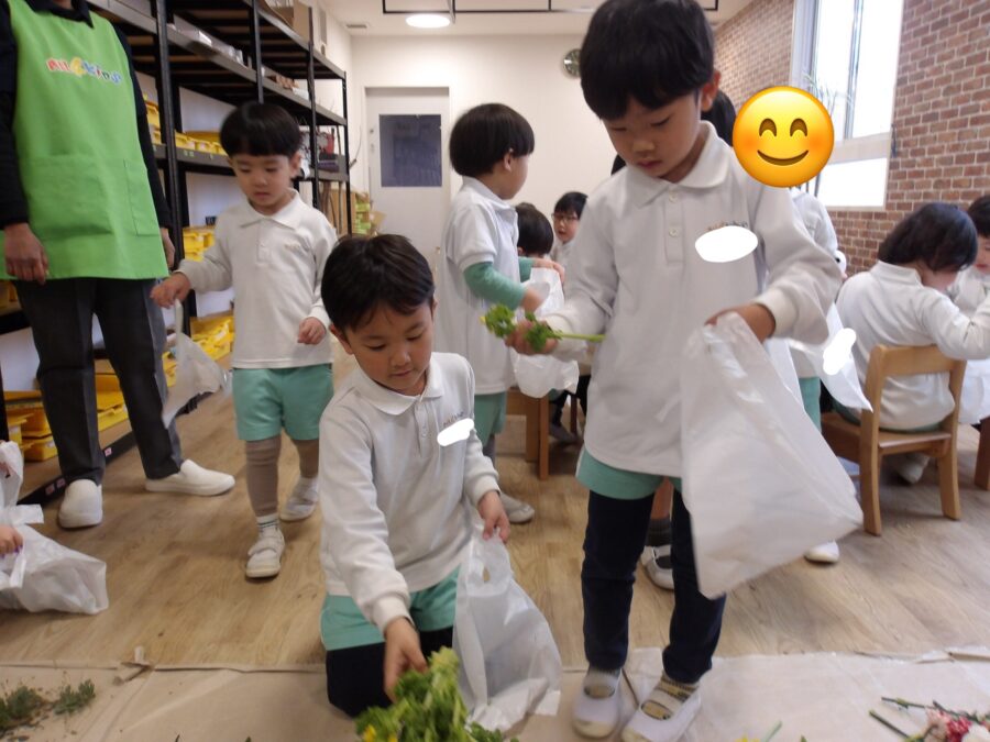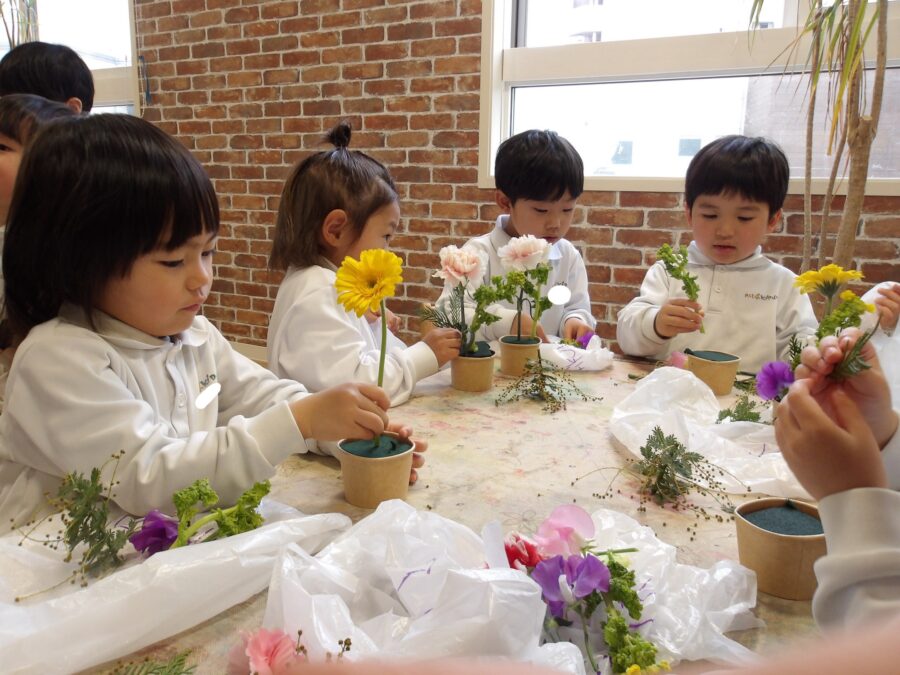 先生に手伝ってもらう場面もありましたが上手にできていました☺️ お部屋遊びを終えた後はフラワーアートをしました💐