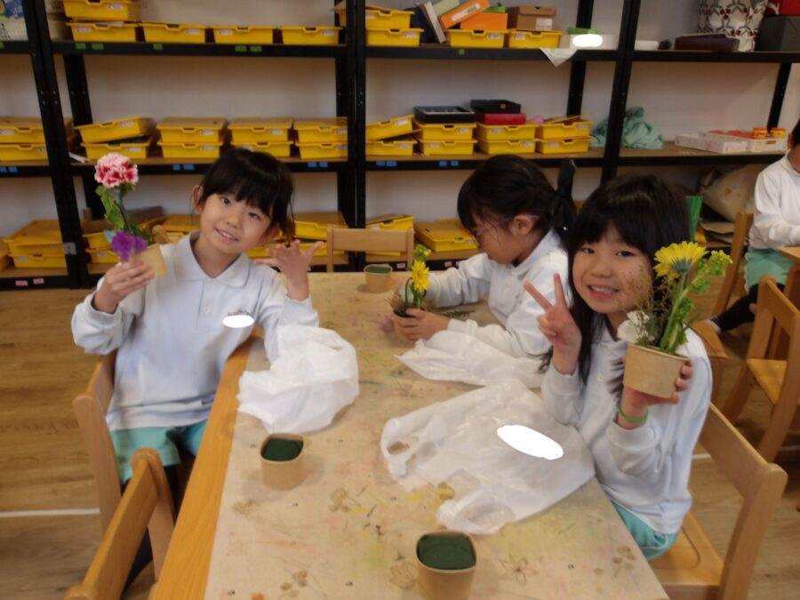 いろんな花中から5本選んでオアシスに刺していました🌸 ハイチーズ📷✨