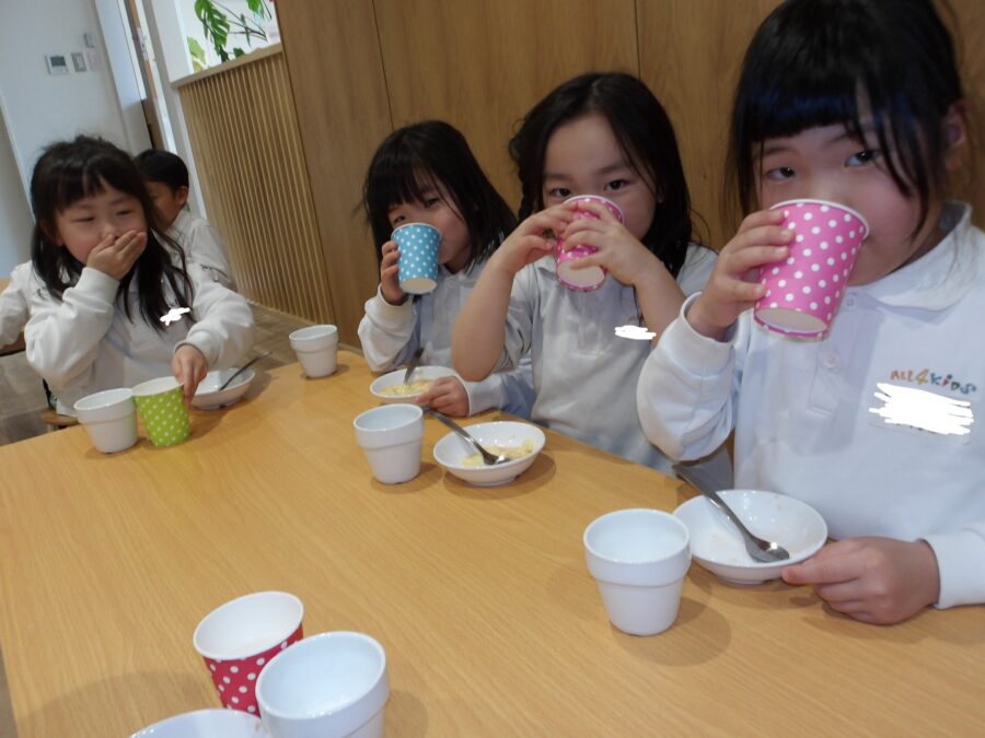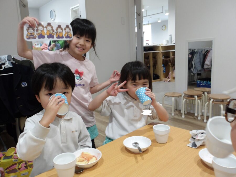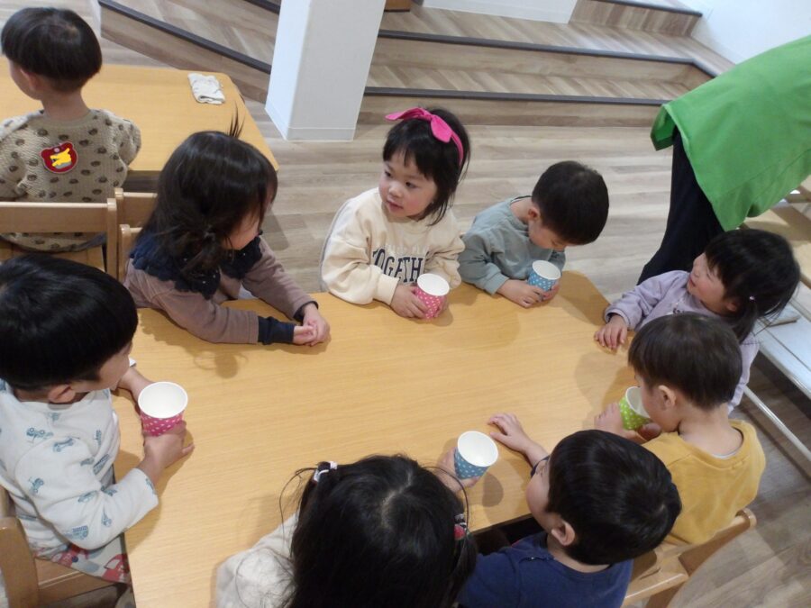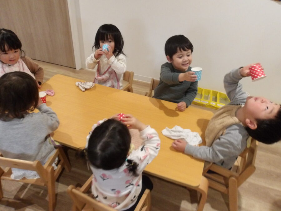そのあとは、「うれしいなひなまつり」を歌い、みんなで白酒のかわりのカルピスを飲んでお祝いしました