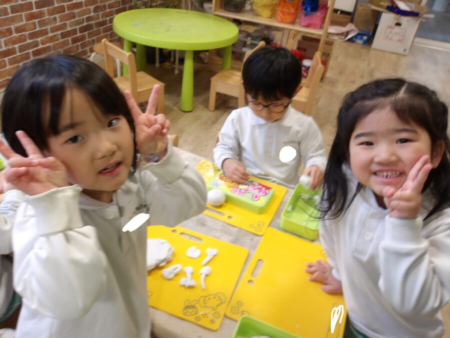 今日は雨が降っていたのでお絵描きと粘土チーム、運動チームに分かれて遊びました☔️