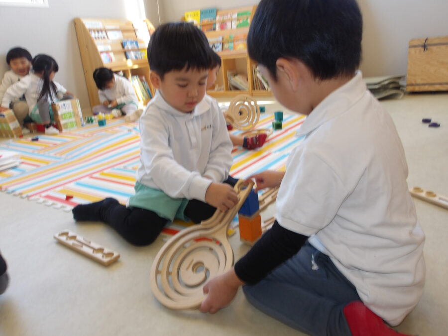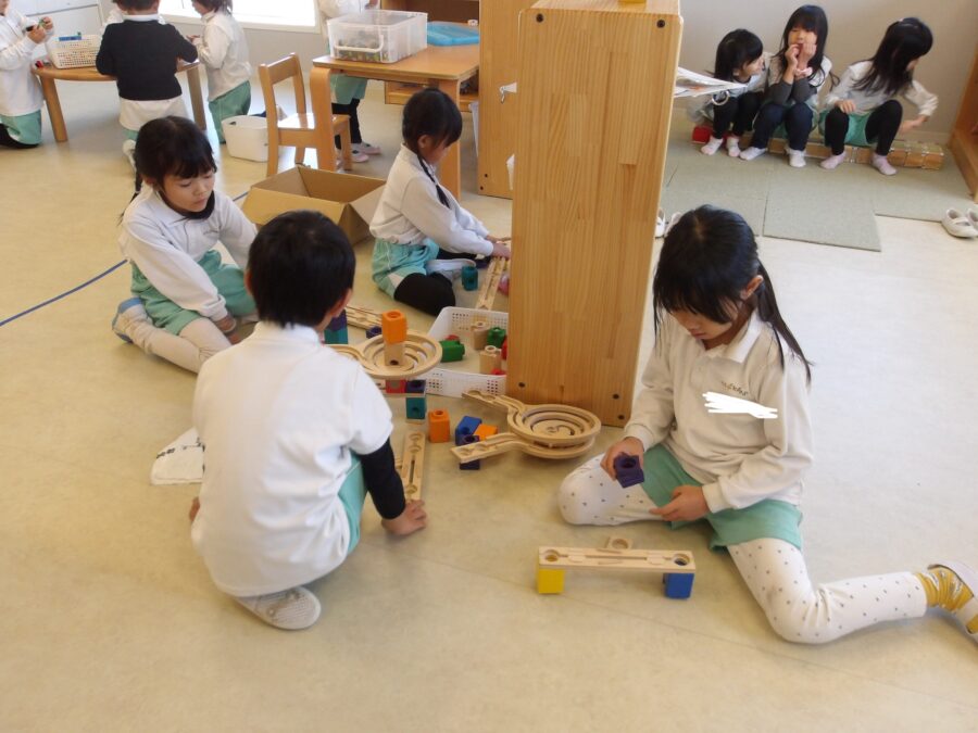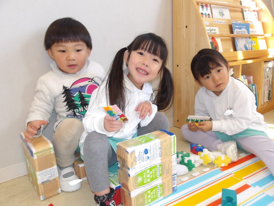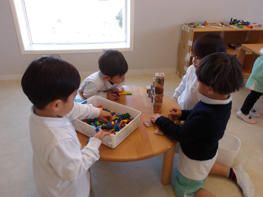 室内遊びでは、お友だちとお話ししながらブロックを積み上げたりごっこ遊びを楽しんだりする姿がありましたよ
