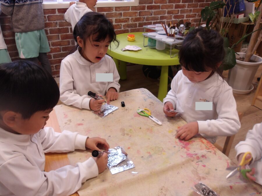 製作では、クリスマスのオーナメント作りをしましたよ!
