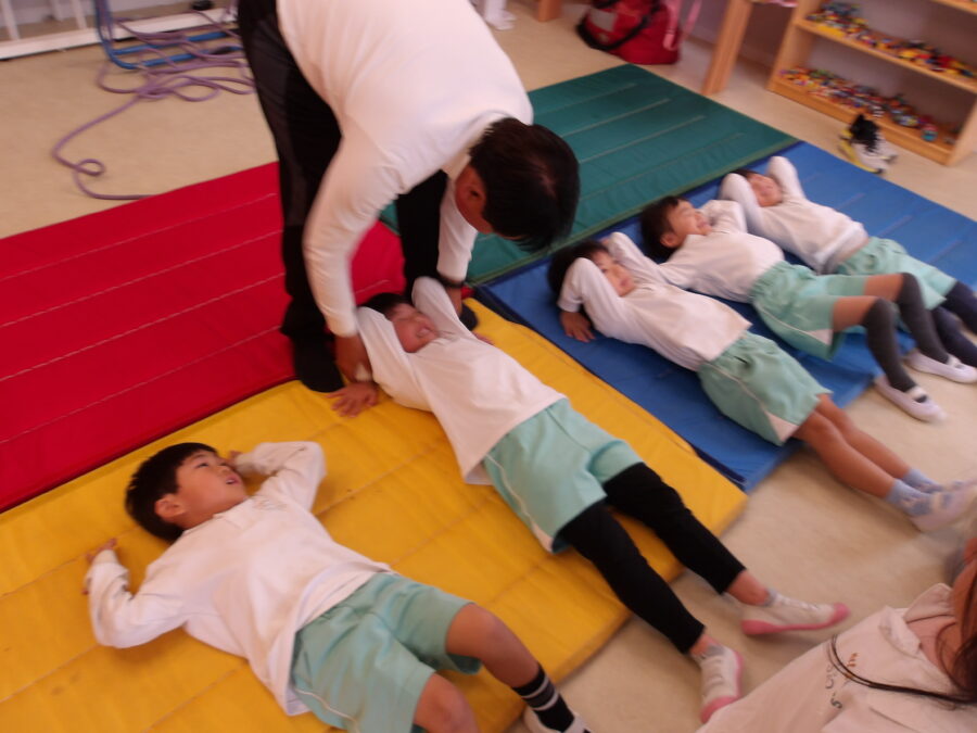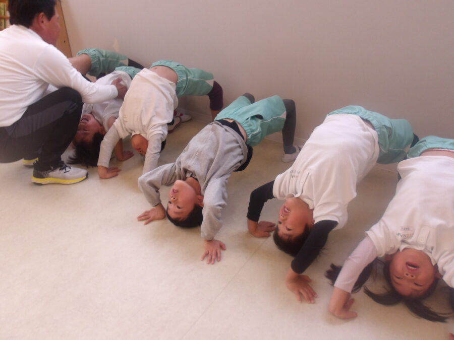マットにつく手の位置を講師の先生と一緒に確認しました![]()