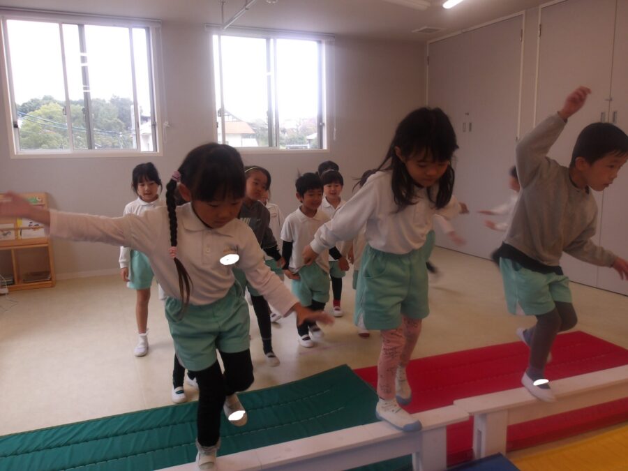 最後は旅人と岩になりきって、平均台の上の岩を乗り越えます🪨