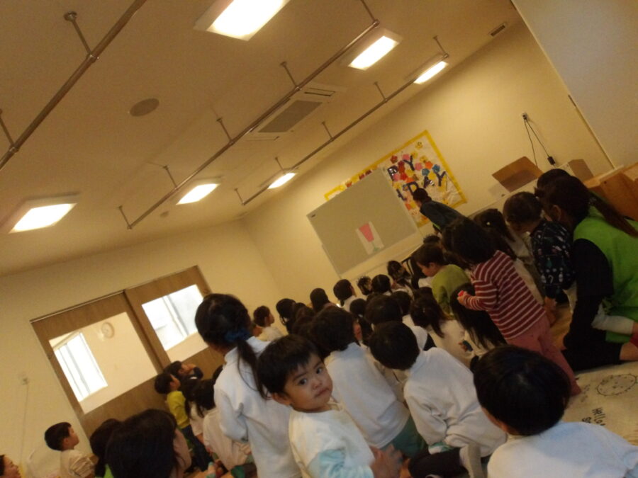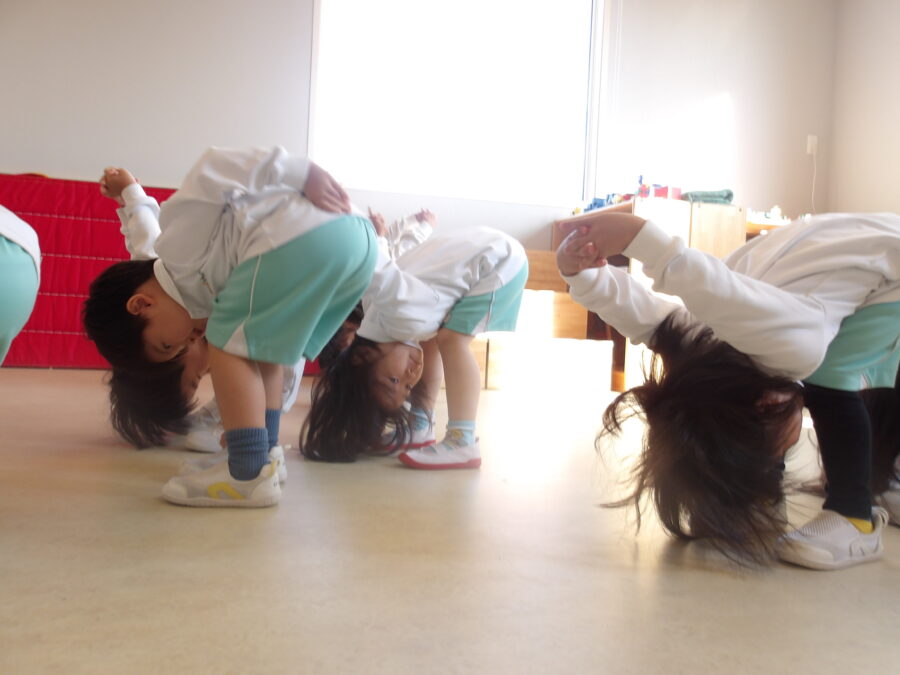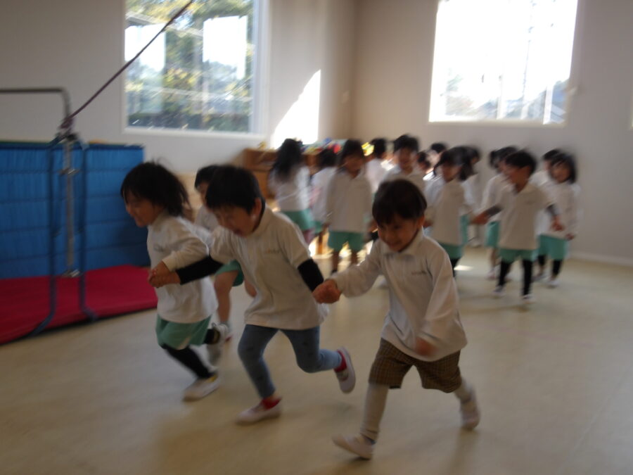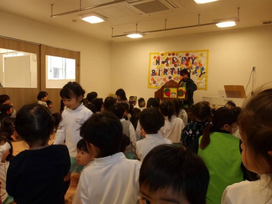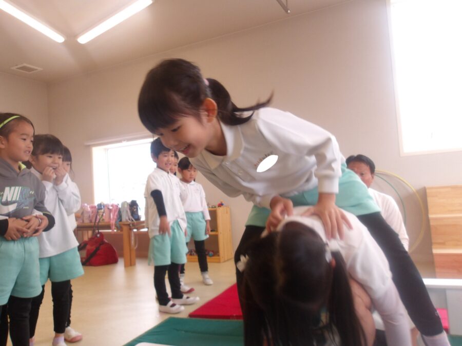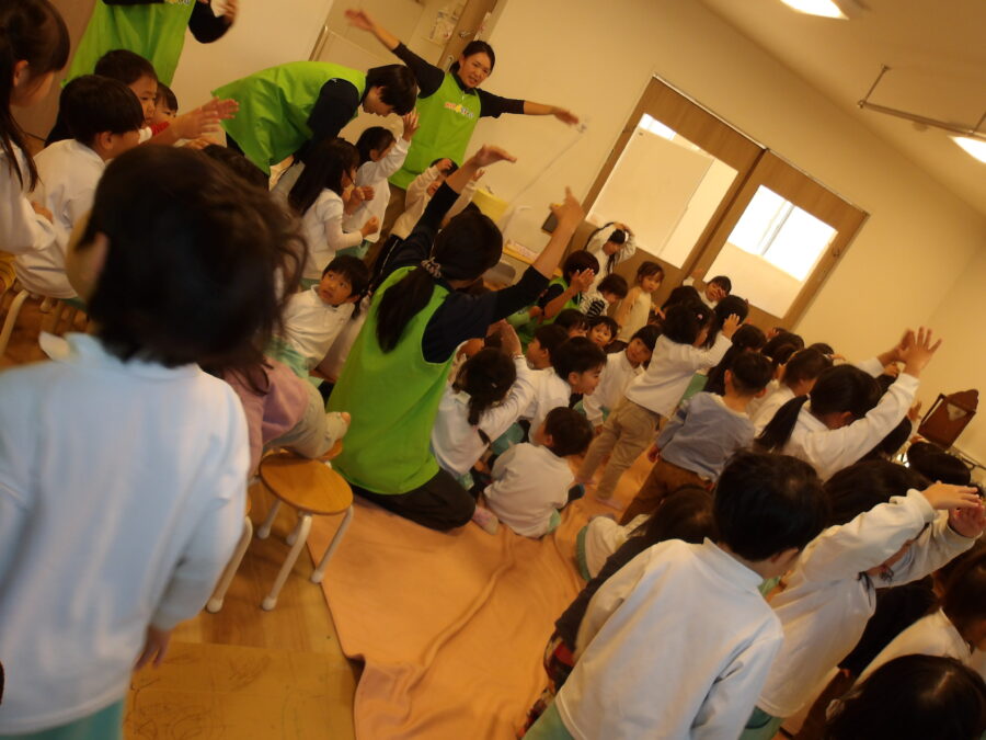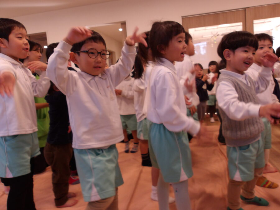 大きな栗の木の下ででは、皆で立って大きな栗の木の下でを歌い体全身で大きな栗を作りました!