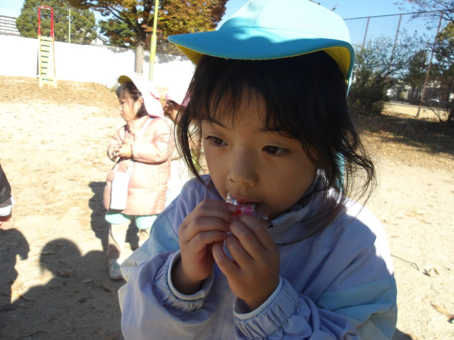 今回は、どんぐりころころや焼き芋グーチーパー、小さな秋、むすんでひらいて、大きな栗の木の下で、を皆で歌って手遊びを楽しみました![]()
