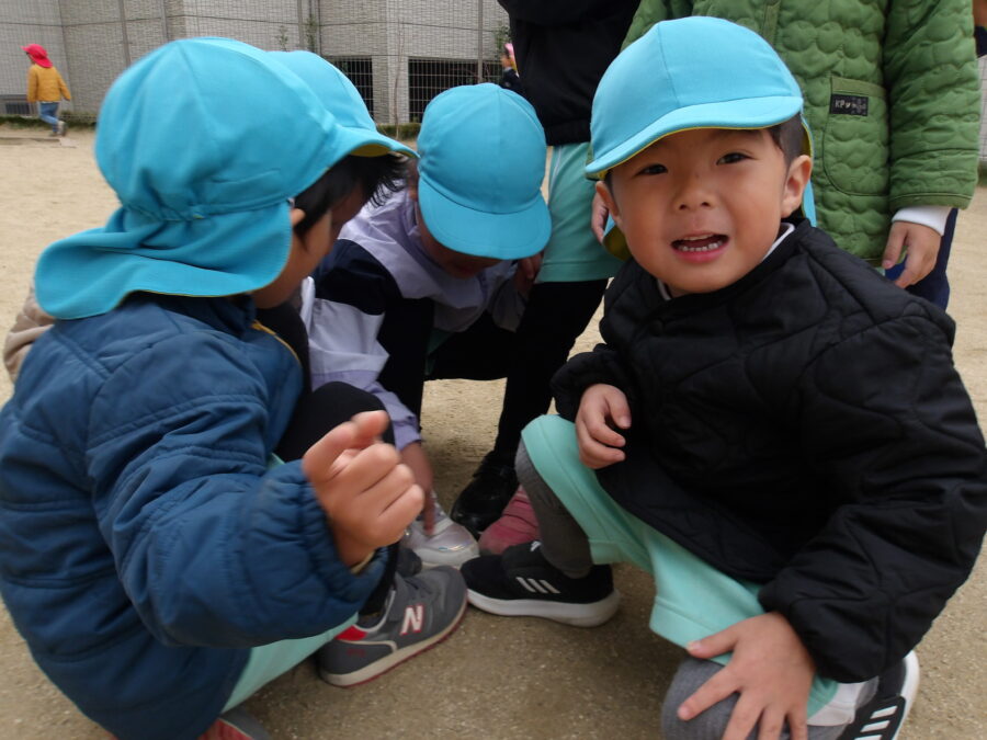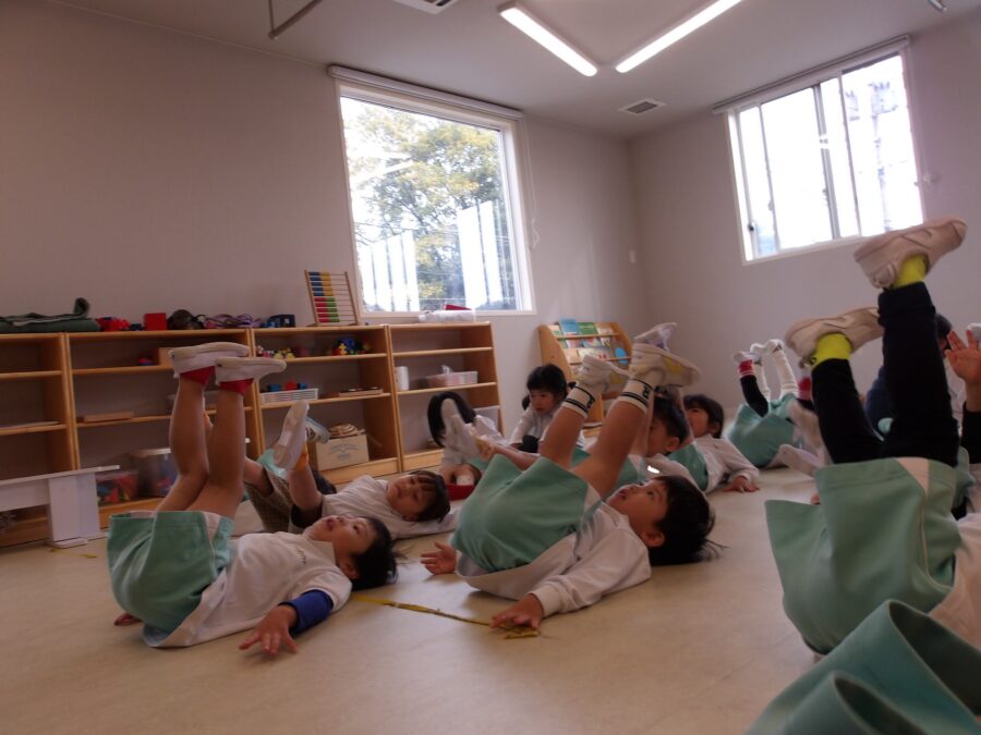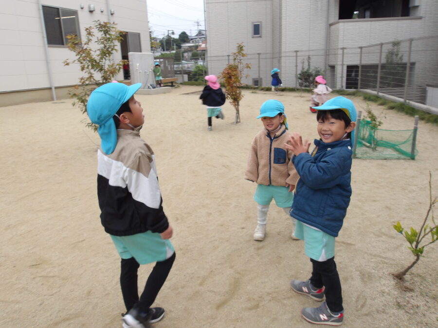 今日はにじ組さんとそら組さんで、室内あそびと園庭あそびに分かれて