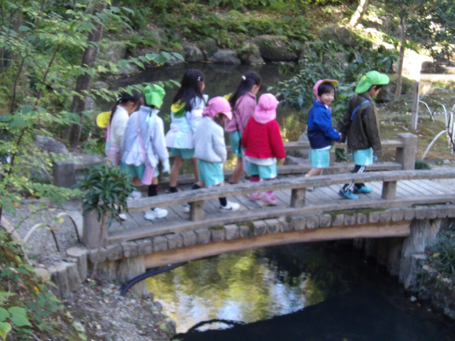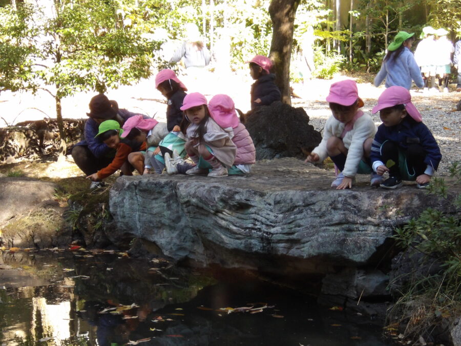 揚輝荘では、敷地内をお散歩し池の中の生き物を探したり