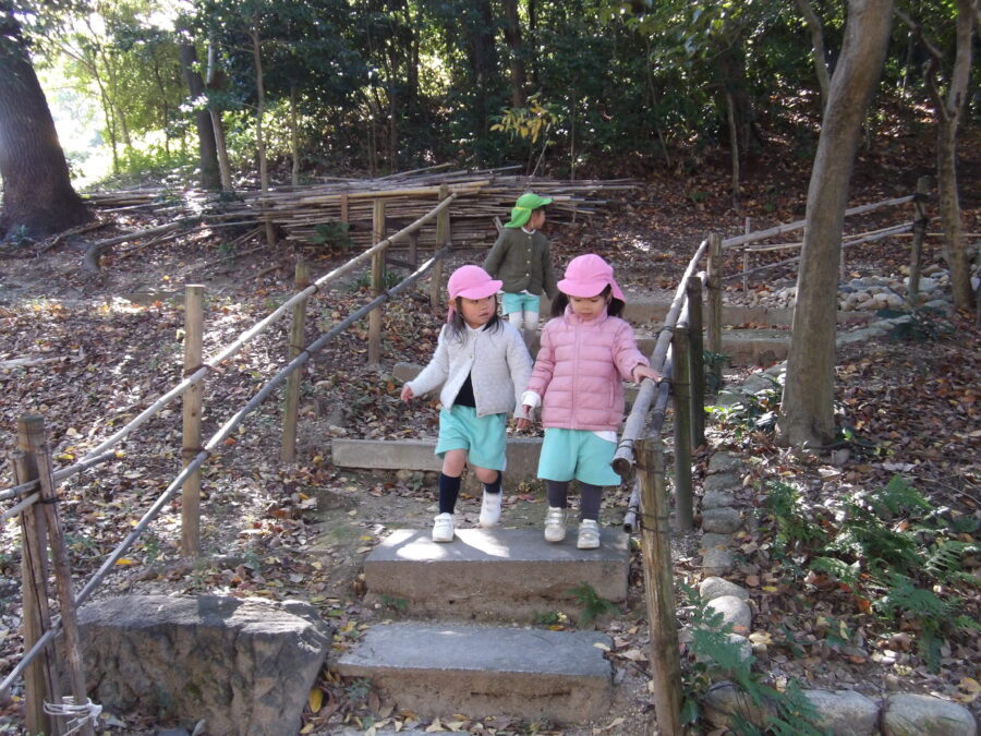 落ち葉や木の枝で遊んだり鬼ごっこをして楽しんだり