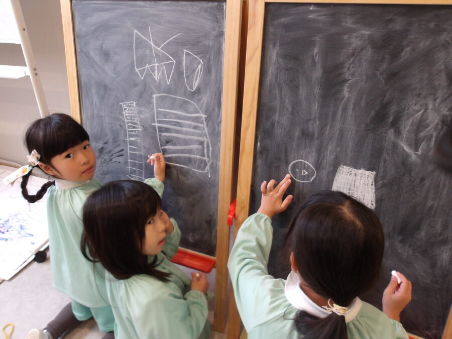 室内遊びではLaQやレゴでお家や乗り物を作っていました🧱 チョークで自分が描きたい物を描いていました🥰