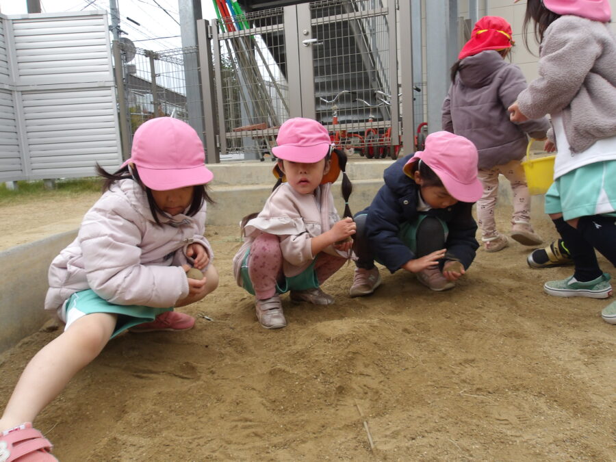 小さいどんぐりを見つけて「赤ちゃんどんぐり見つけた!」と嬉しそうに言ってました🥰 土を掘っていろんな石を見つけてました🪨 お部屋チームはお友達とおもちゃで遊んだり、先生やお友達と製作をしました✂️
