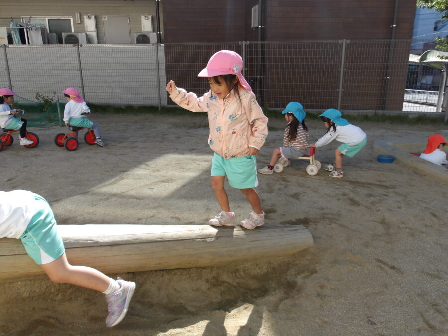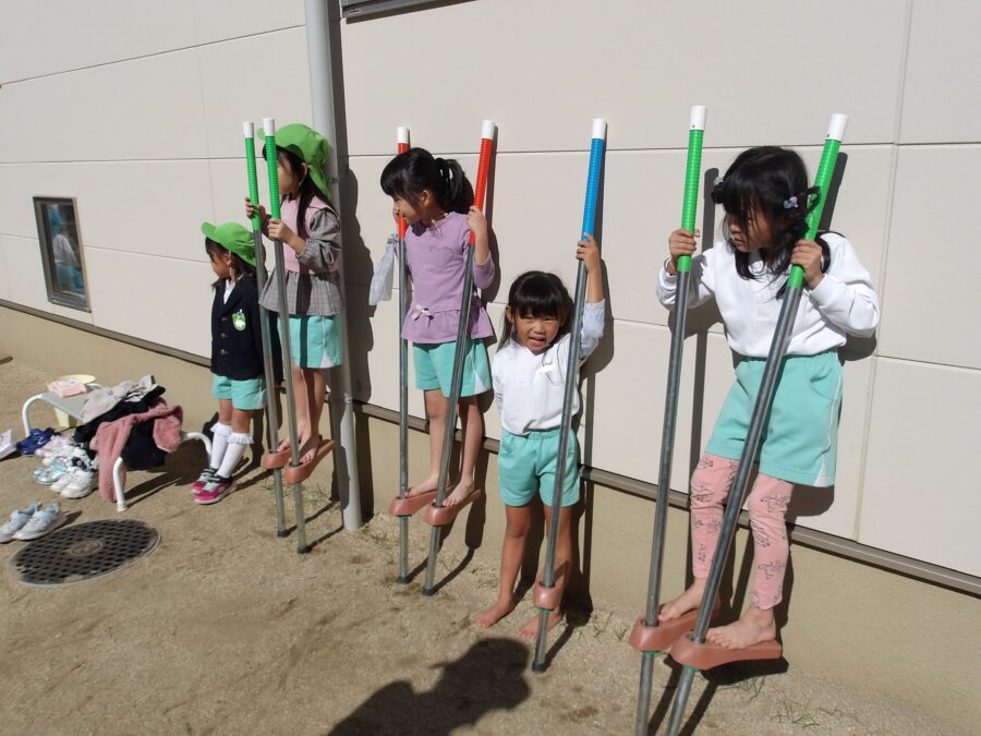 できた物を「見て!」「写真撮って!」とニコニコしながら言ってました✨ 園庭チームは最近園庭に出した竹馬に挑戦!!!たいよう組さんは1人でもできている子がいました👏🏻