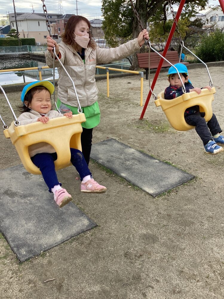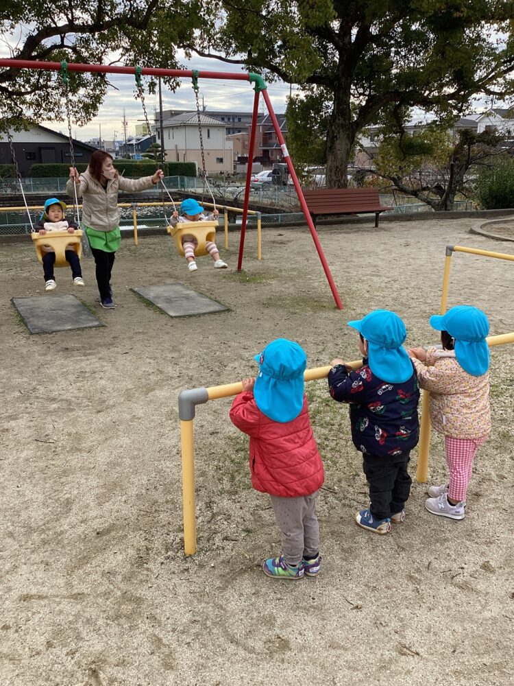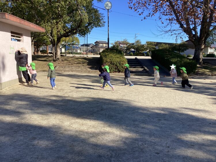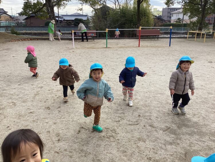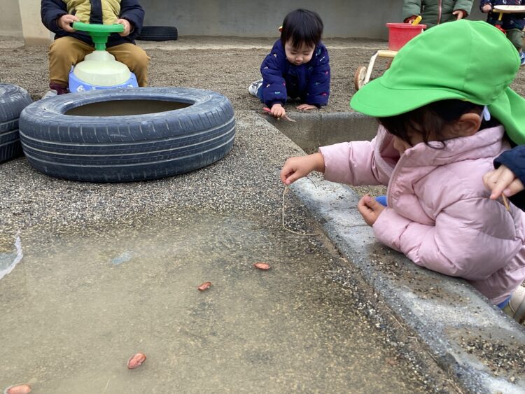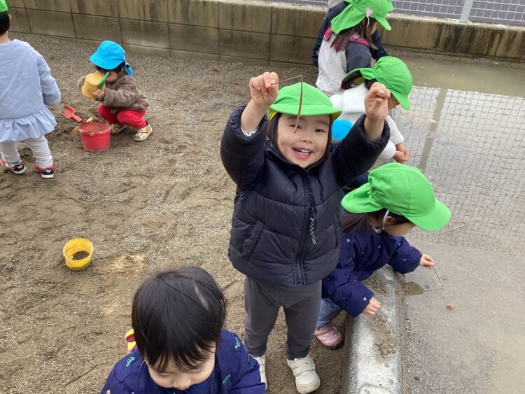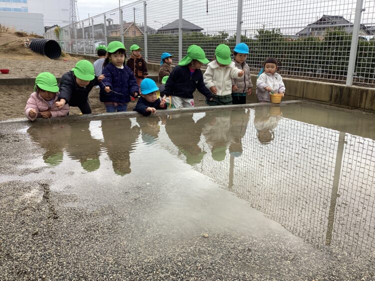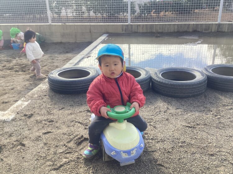 今日は園庭で遊びました!水たまりをよけて上手に遊んでいましたよ![]()