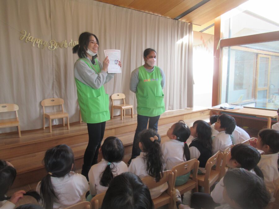 🎅からいただいたプレゼントで遊ぶお友だち...