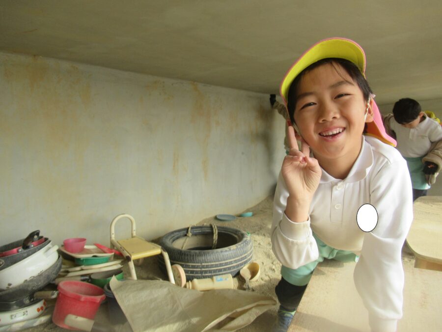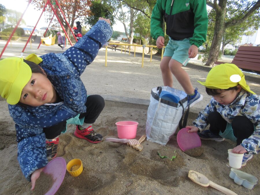 砂場で写真を撮ったり