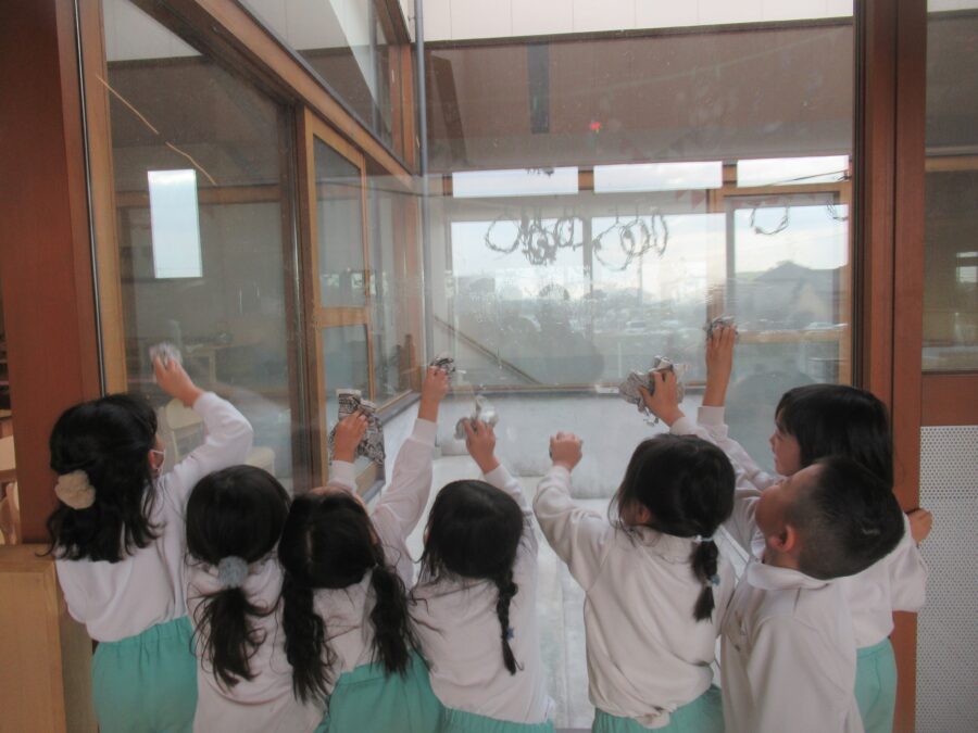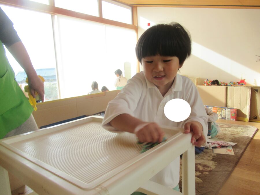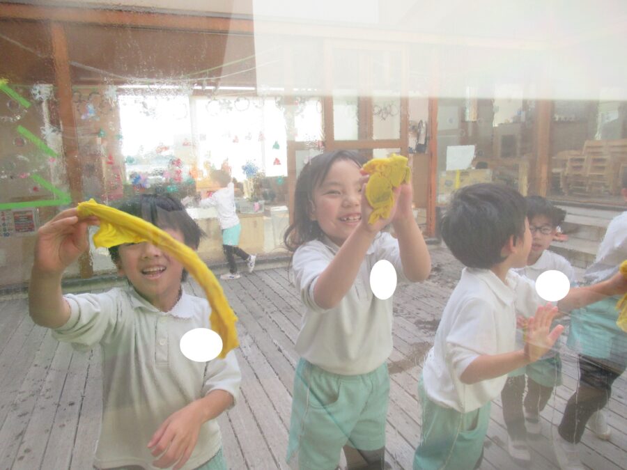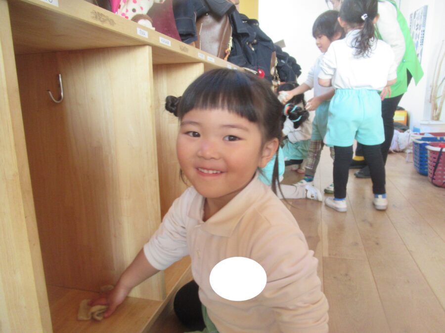 お部屋では先生たちと大掃除をする子どもたちが✨