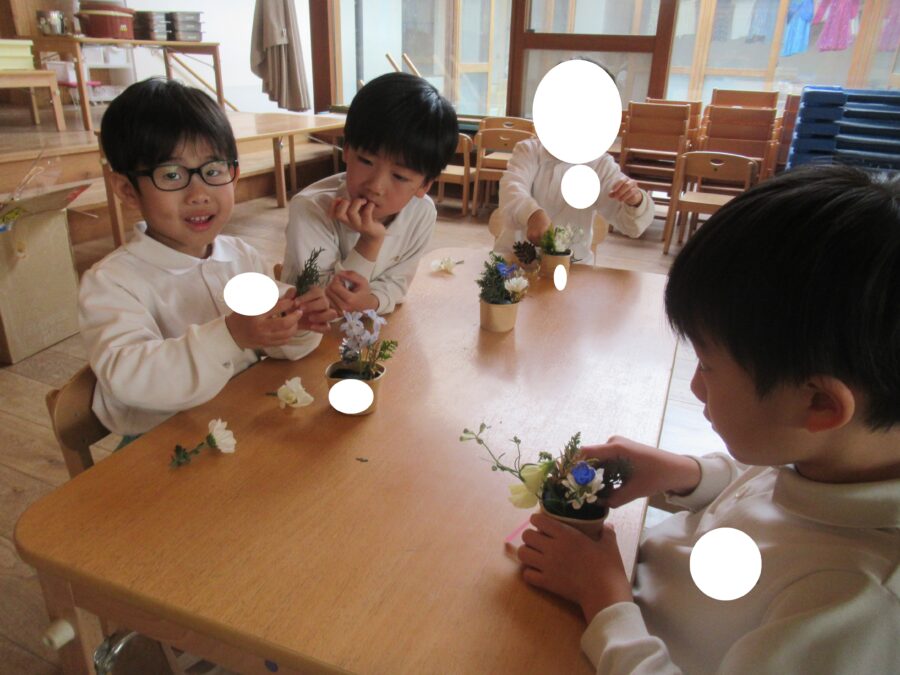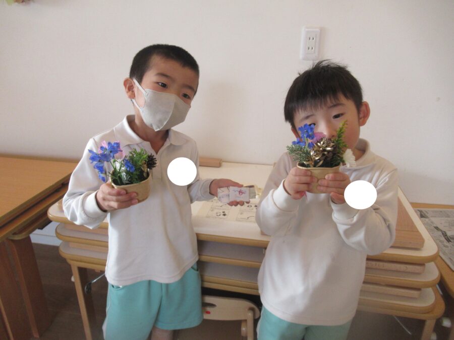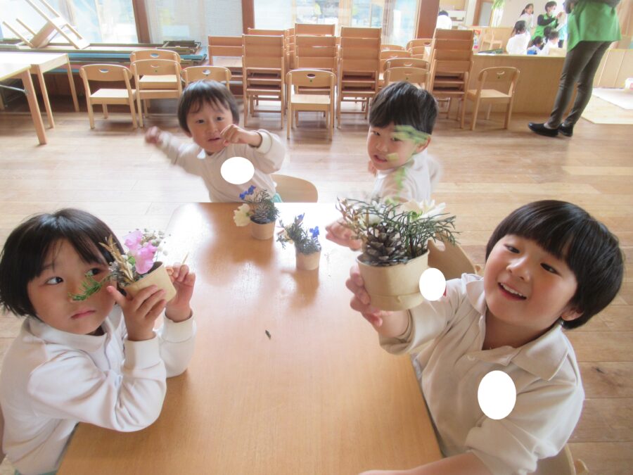 お部屋の中ではフラワーアートをする子どもたちが!!!