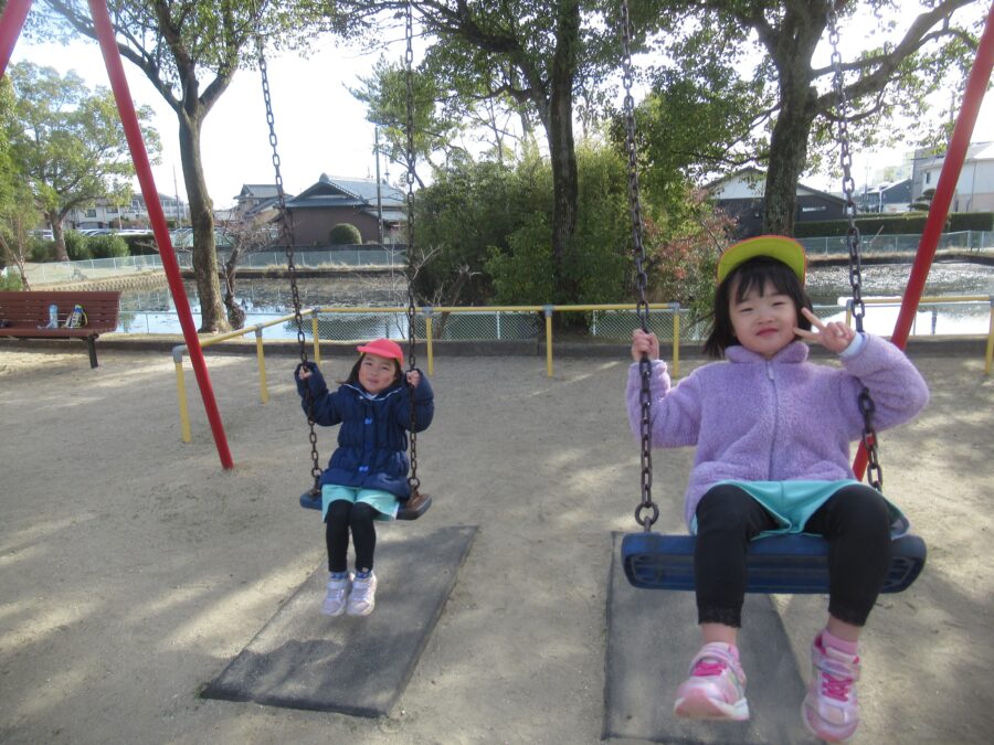 公園では大好きなブランコやすべり台で遊んだり