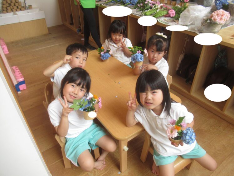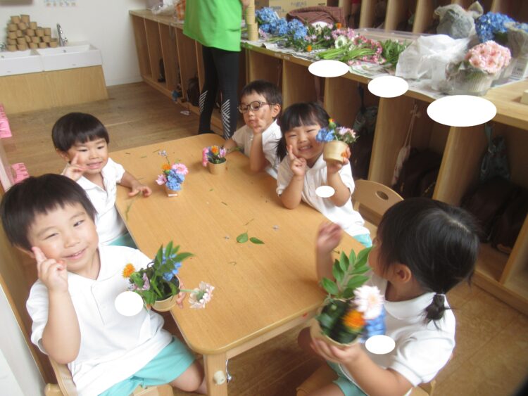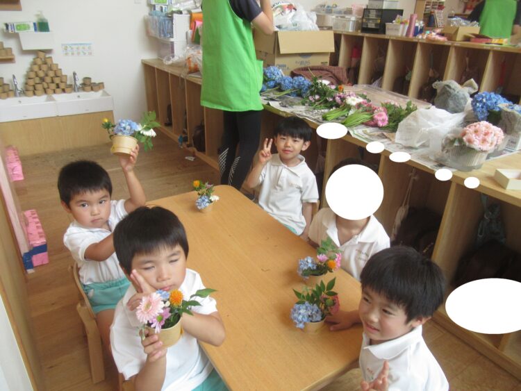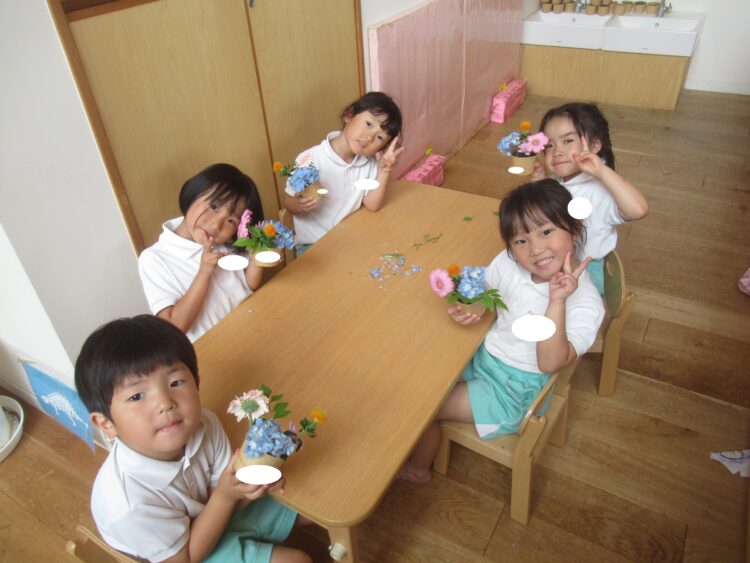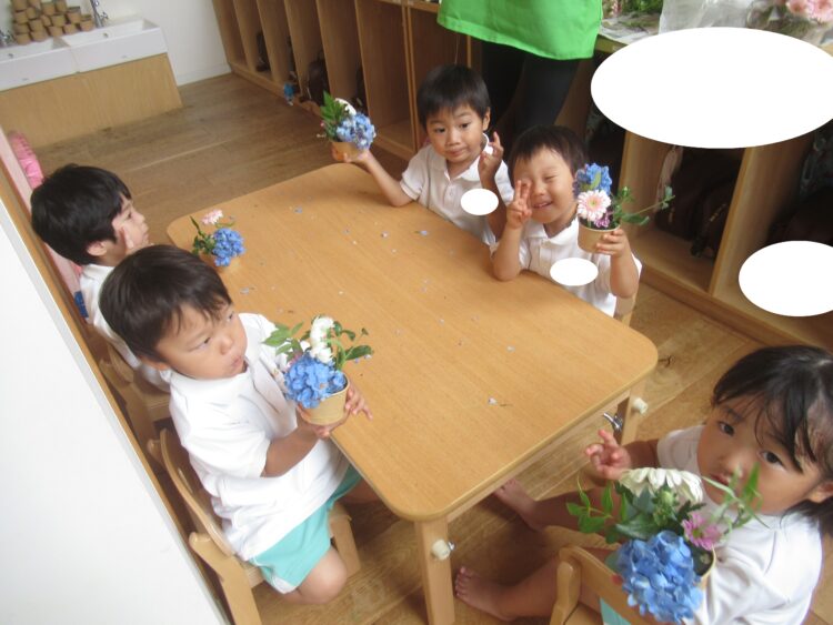 【アジサイ・ガーベラ・ヤグルマ草・スプレーマム・紅花・ソケイ】