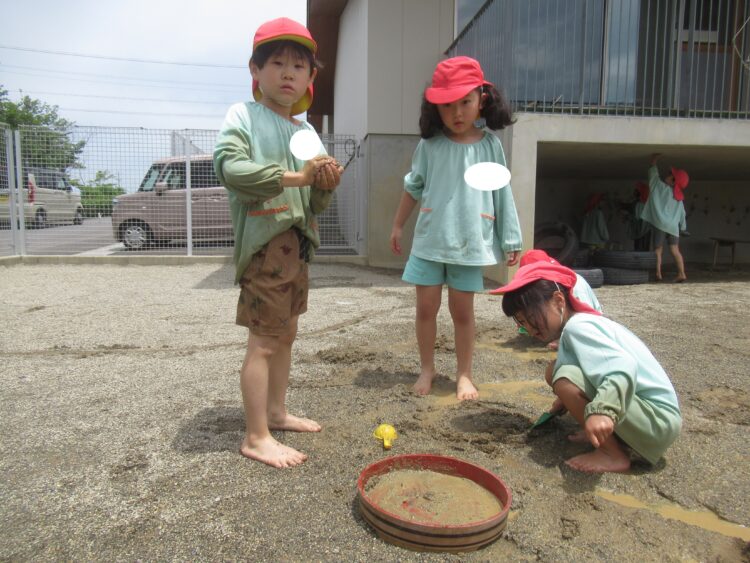 久しぶりのどろんこ遊びでは泥団子を作ったり、壁面を使ってアートを作ったりと思い思いに楽しんでいました✨