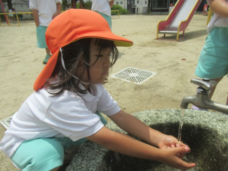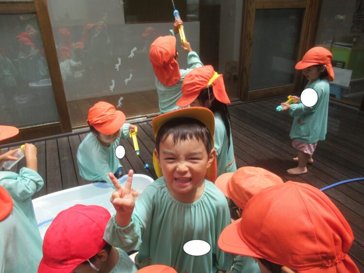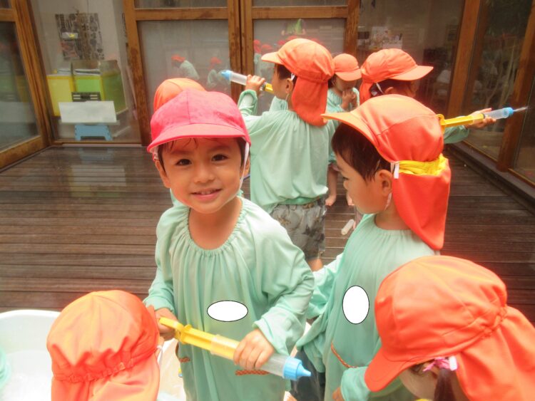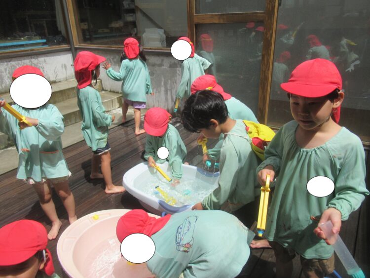水鉄砲や金魚すくい、体に水をかけて気持ちよさそう!
